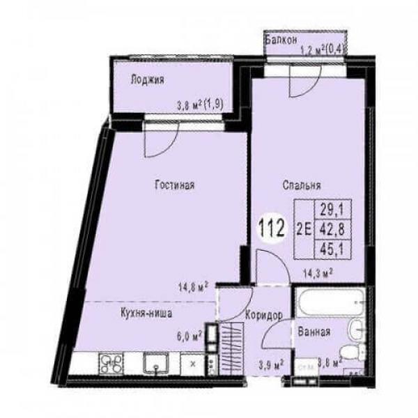 - 1К 42.6 м² стоимость от 5 965 000 ₽