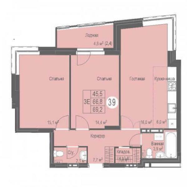 - 2К 69.2 м² стоимость 9 503 600 ₽
