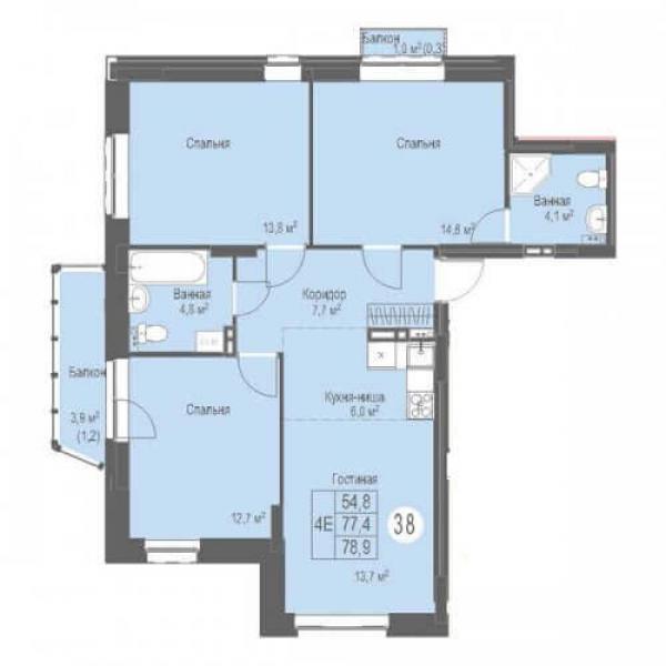 - 3К 78.9 м² стоимость 10 478 100 ₽