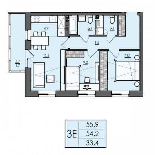 - 3К от 52,9 м² стоимость от 5 877 000 ₽