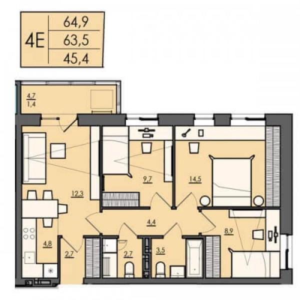- 4К от 64,9 м² стоимость от 6 970 000 ₽