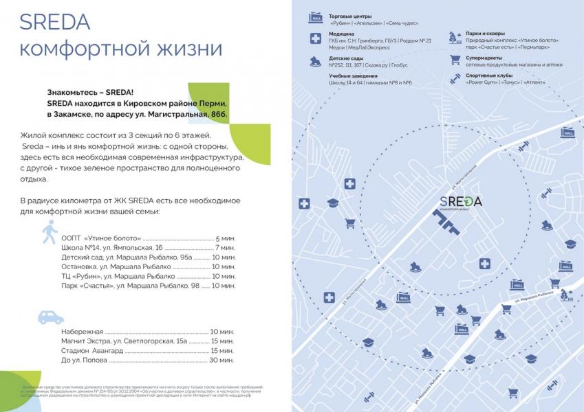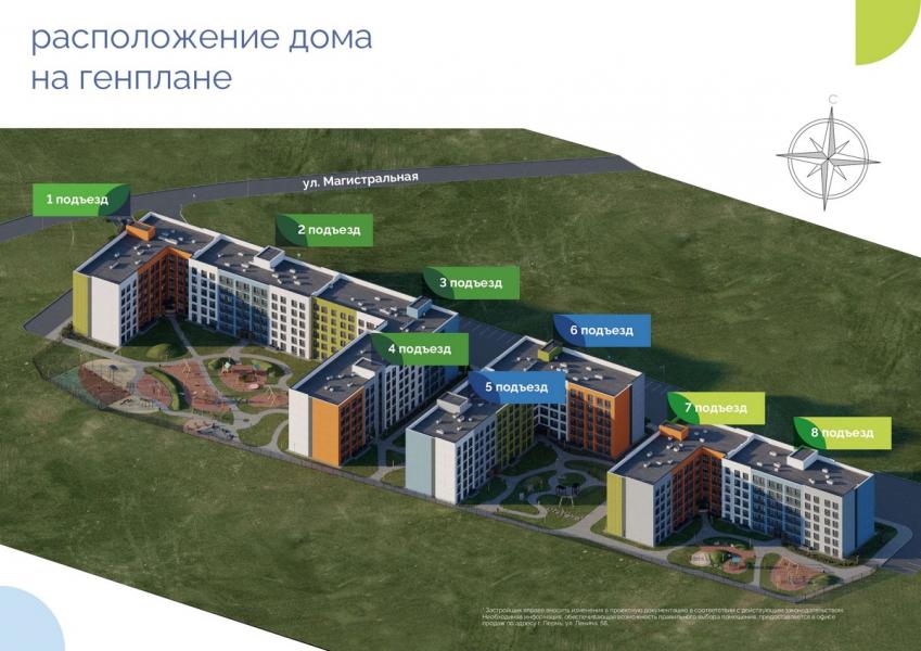 ЖК находится в Кировском районе Перми, в Закамске, по адресу ул. Магистральная, 86б, состоит из 3 корпусов по 6 этажей. Инь и янь комфортной жизни: здесь есть вся нужная инфраструктура для жизни с одной стороны и тихое зеленое пространство для эффективного отдыха с другой. В радиусе километра от ЖК есть все необходимое для комфортной жизни: детские сады, также частные и специализированные, природный комплекс «Утиное болото», парк «Счастье есть», «Пермьпарк», школы, гимназии, торговые центры, супермаркеты, сетевые аптеки и тому подобное. В 3 минутах ходьбы от дома можно гулять по лесу, отдыхать или бегать по утрам по тенистым дорожкам, а зимой кататься на лыжах.