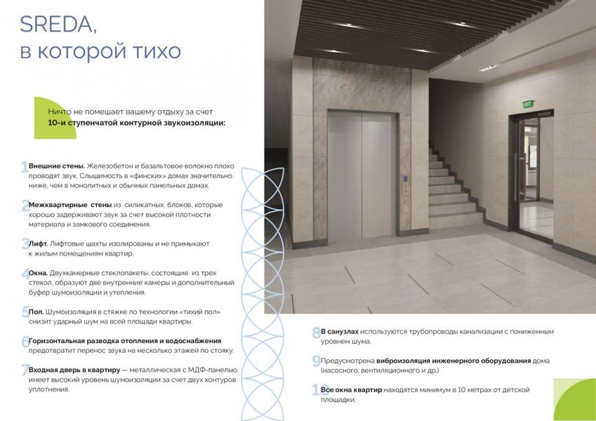 Попасть во двор жителям легко и безопасно благодаря сквозным проходам – весь дом для этого обходить не нужно. Домофоны находятся в теплых тамбурах. Подъезды выделены порталами и снабжены яркими, хорошо читаемыми даже в темное время суток указателями. Безбарьерный вход в подъезд и колясочные в холлах избавят от лишних забот.