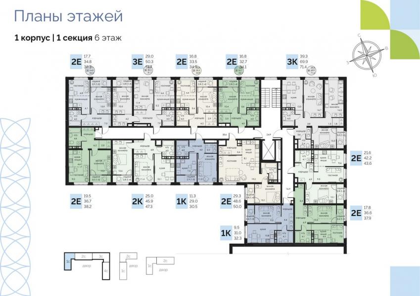 - 3-к - от 71,8 кв.м. стоимостью от 6 863 400 тыс. рублей.