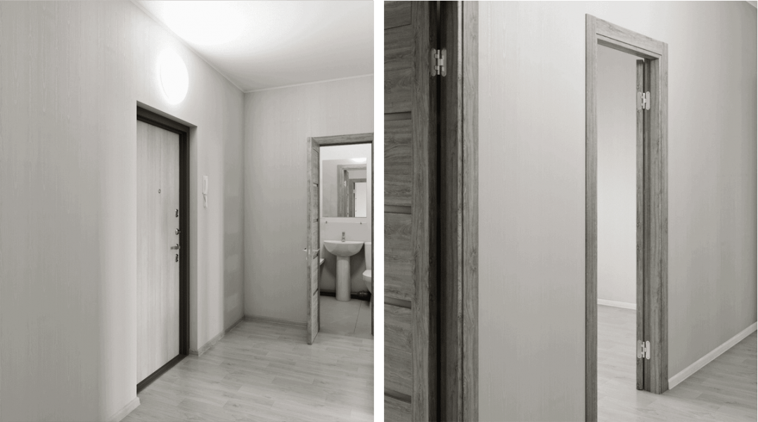 Современный и минималистичный холл. Сочетание цветов в отделке смотрится выигрышно и лаконично. Уверены, что входная группа в строящемся доме станет местом притяжения соседей, а жильцы почувствуют комфорт родного дома, лишь переступив порог парадной.