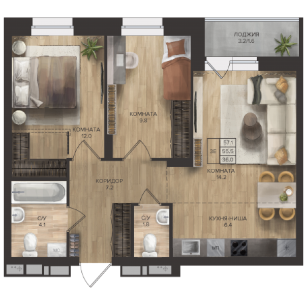 Приобретите квартиру с отделкой класса-комфорт.