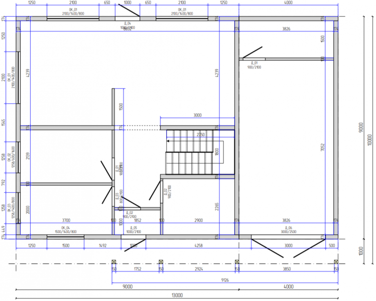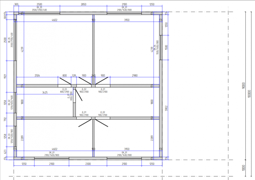 Входит: свайное поле, обвязка, теплый контур (стены, перекрытия нижние, верхние, межкомнатные стены, стропильная система, кровля, окна двери).