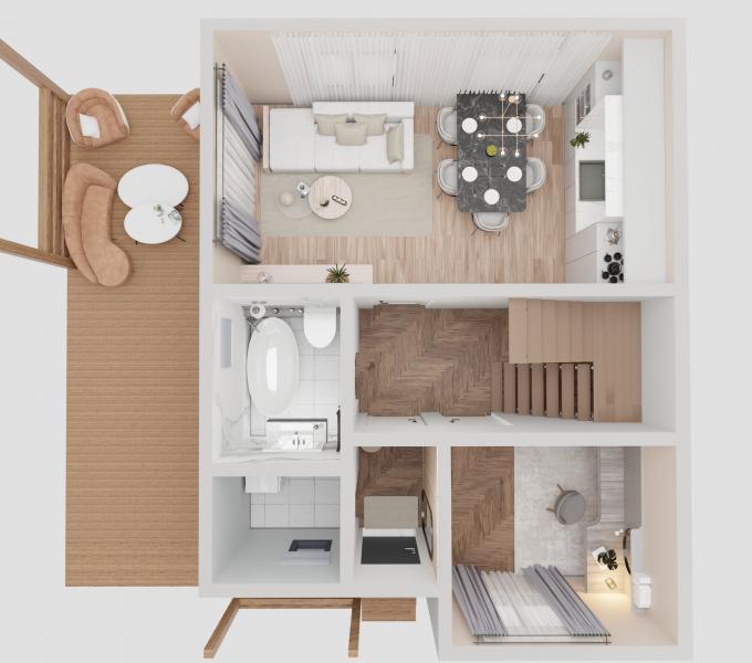 Входит: Дом под ключ, свайное поле, обвязка, теплый контур, фасад, софиты, цоколь, облицовка окон, септик, скважина до 25 метров, ввод эл. энергии, ввод воды, ввод в дом канализации.