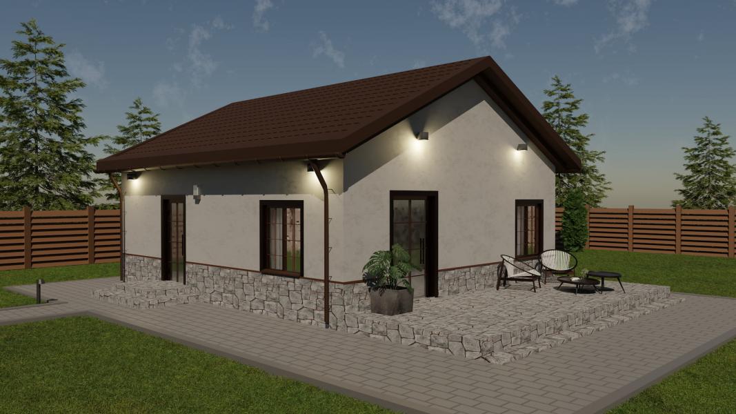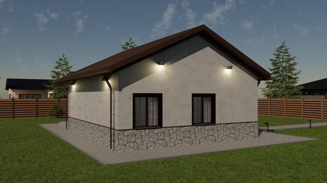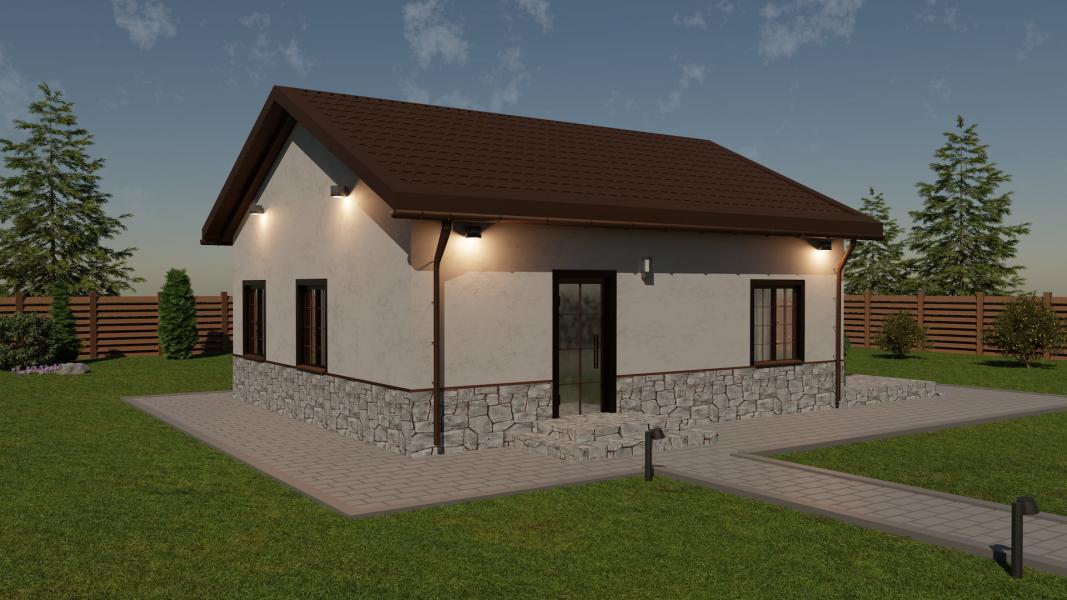 Входит: Дом под ключ, свайное поле, обвязка, теплый контур, фасад, софиты, цоколь, облицовка окон, септик, скважина до 25 метров, ввод эл. энергии, ввод воды, ввод в дом канализации.