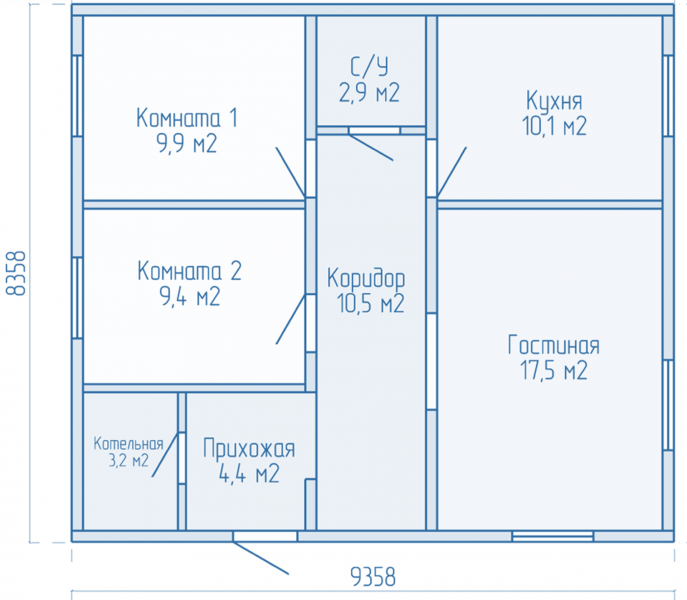 Входит: свайное поле, обвязка, теплый контур (стены, перекрытия нижние, верхние, межкомнатные стены, стропильная система, кровля, окна двери).