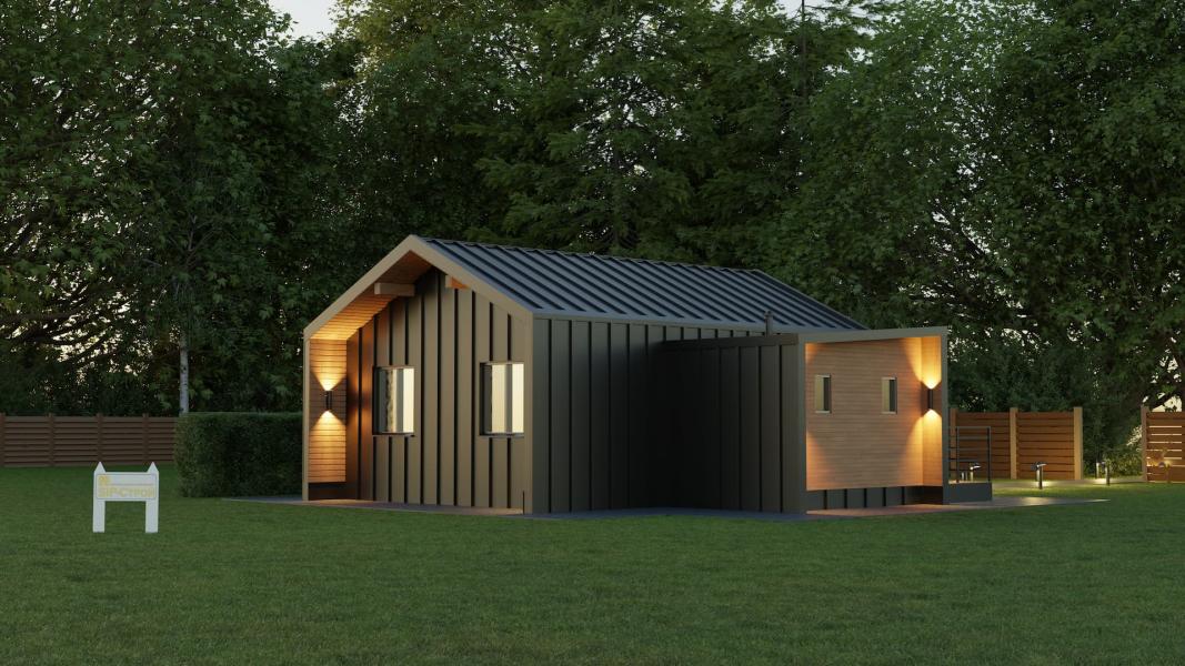 Входит: Дом под ключ, свайное поле, обвязка, теплый контур, фасад, софиты, цоколь, облицовка окон, септик, скважина до 25 метров, ввод эл. энергии, ввод воды, ввод в дом канализации.